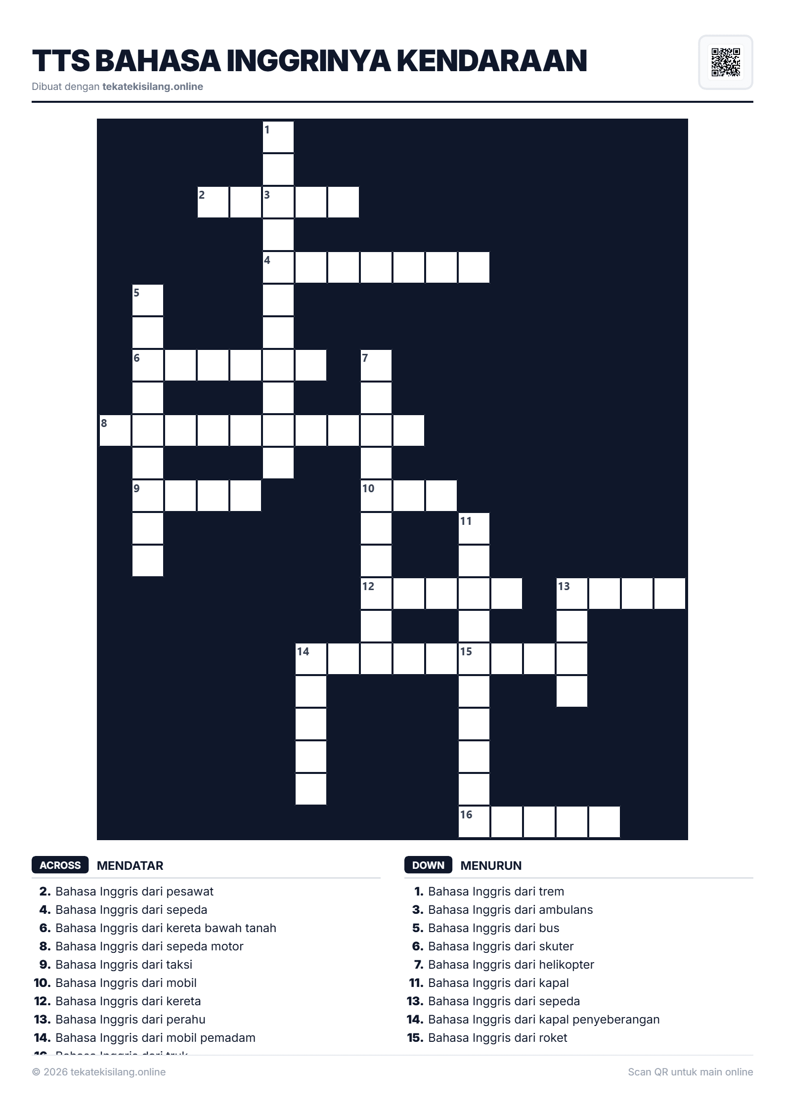 TTS Bahasa Inggrinya Kendaraan17/1/2026Bahasa1588 x 2246 pxVisual puzzle TTS Bahasa Inggrinya Kendaraan. Mainkan TTS online gratis sekarang!#TTS Bahasa Inggrinya Kendaraan#Bahasa#teka teki silang
