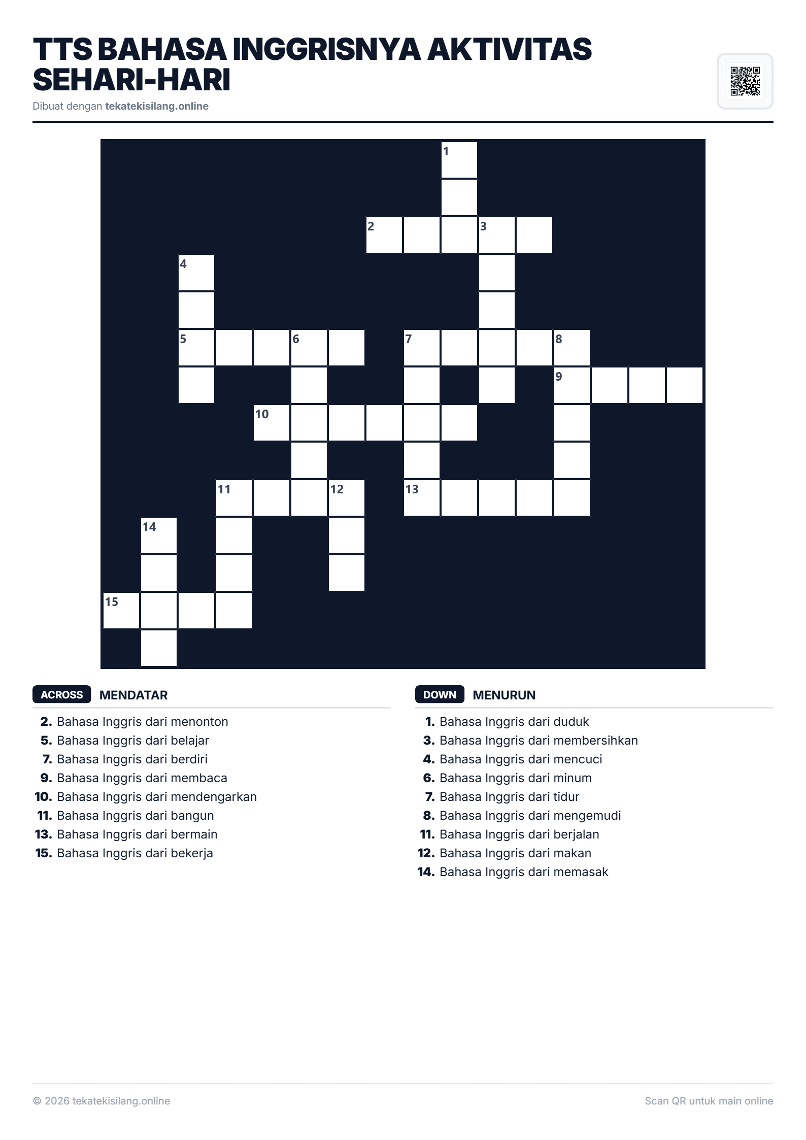 Visual puzzle TTS Bahasa Inggrisnya Aktivitas Sehari-hari. Mainkan TTS online gratis sekarang!