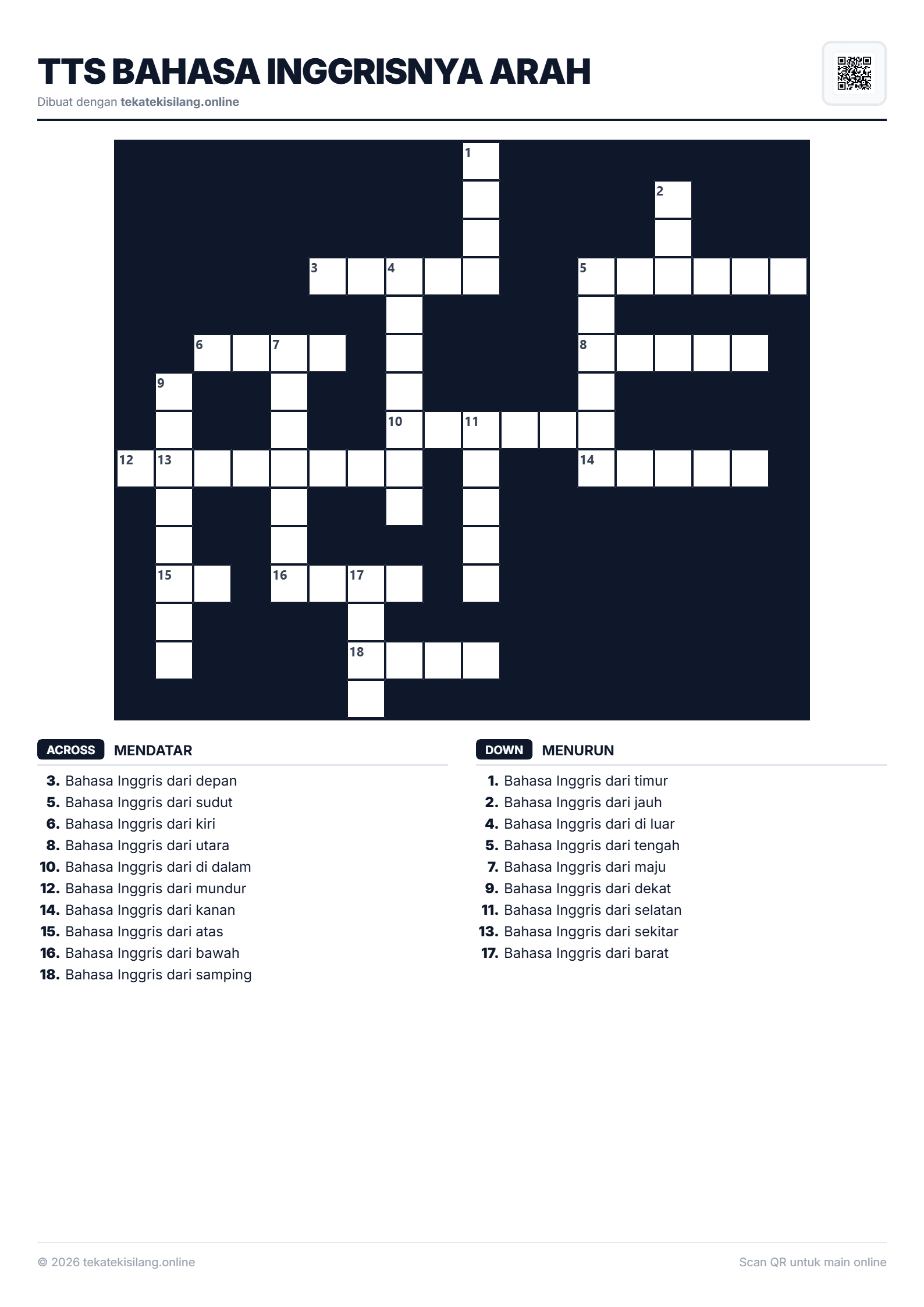 TTS Bahasa Inggrisnya Arah17/1/2026Bahasa1588 x 2246 pxVisual puzzle TTS Bahasa Inggrisnya Arah. Mainkan TTS online gratis sekarang!#TTS Bahasa Inggrisnya Arah#Bahasa#teka teki silang