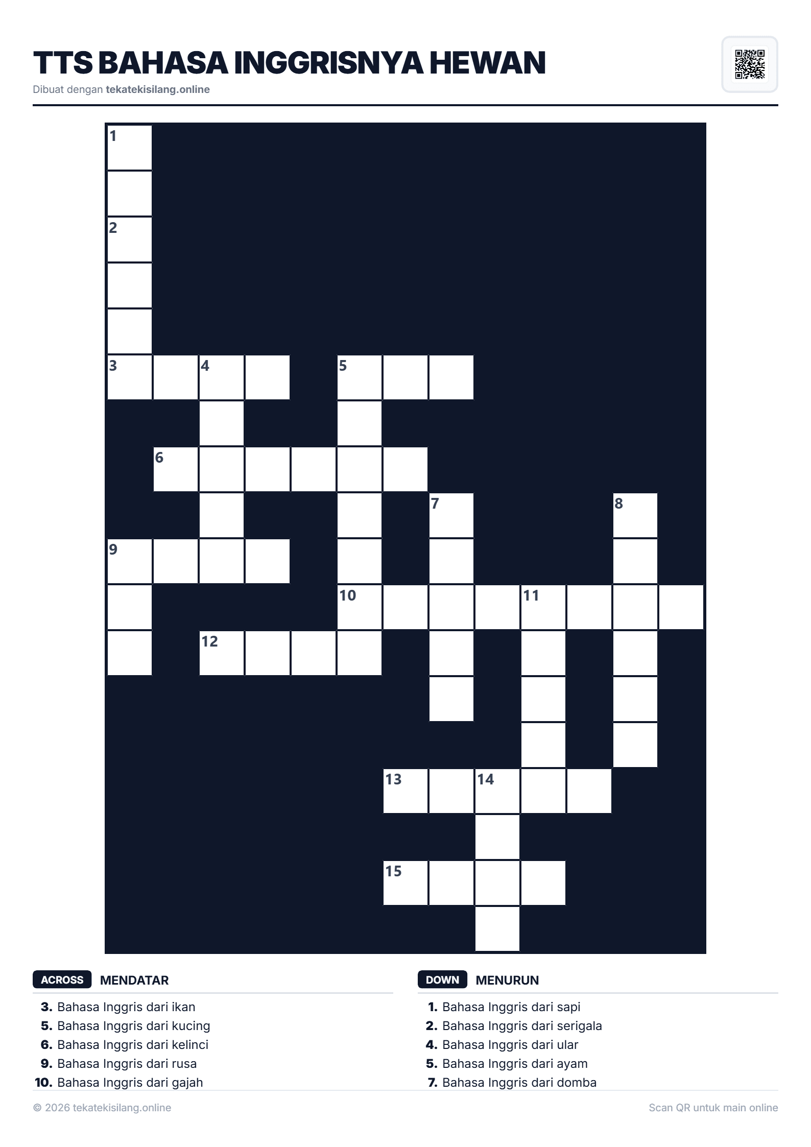 TTS Bahasa Inggrisnya Hewan17/1/2026Bahasa1588 x 2246 pxVisual puzzle TTS Bahasa Inggrisnya Hewan. Mainkan TTS online gratis sekarang!#TTS Bahasa Inggrisnya Hewan#Bahasa#teka teki silang
