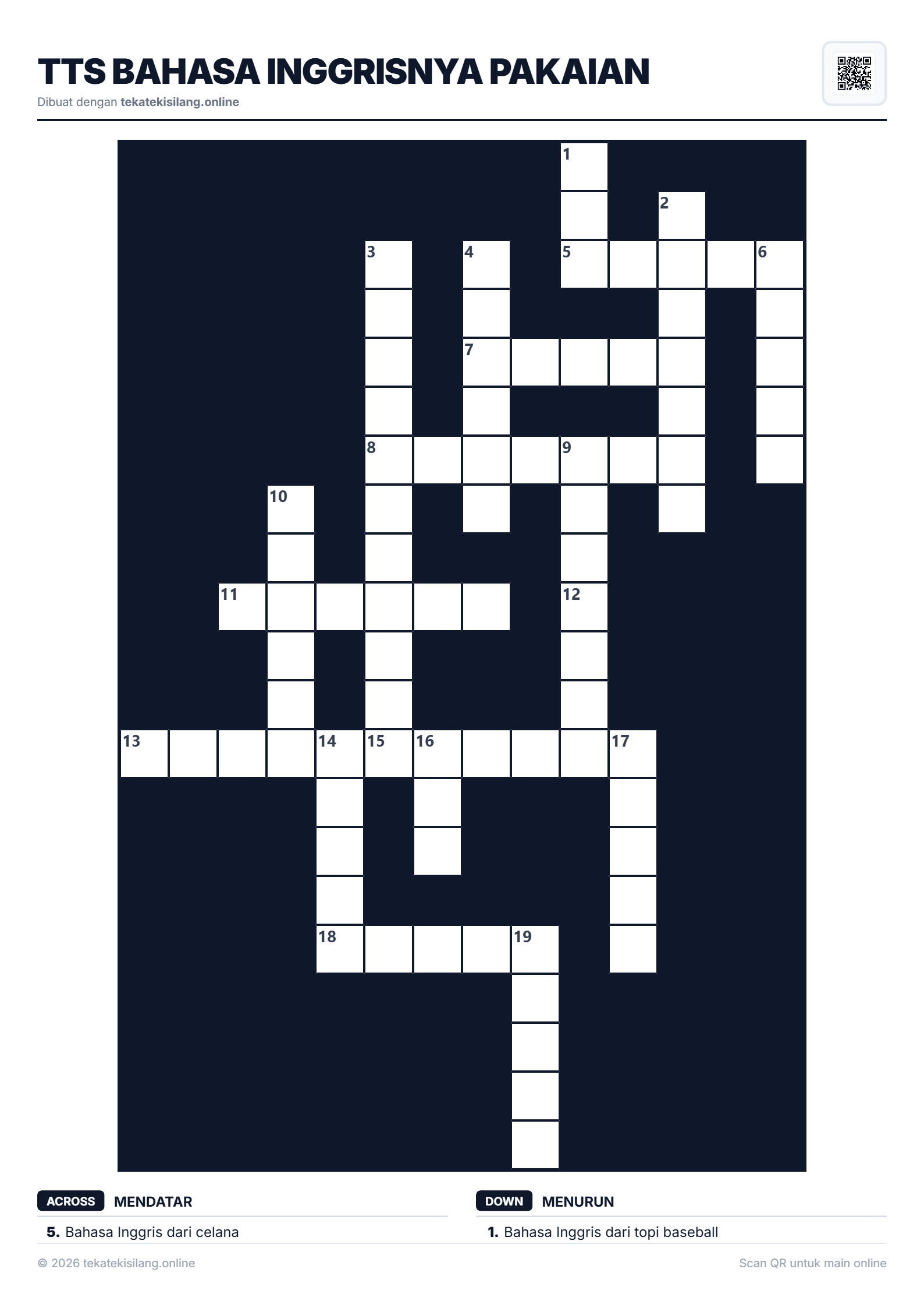 TTS Bahasa Inggrisnya Pakaian17/1/2026Bahasa1588 x 2246 pxVisual puzzle TTS Bahasa Inggrisnya Pakaian. Mainkan TTS online gratis sekarang!#TTS Bahasa Inggrisnya Pakaian#Bahasa#teka teki silang