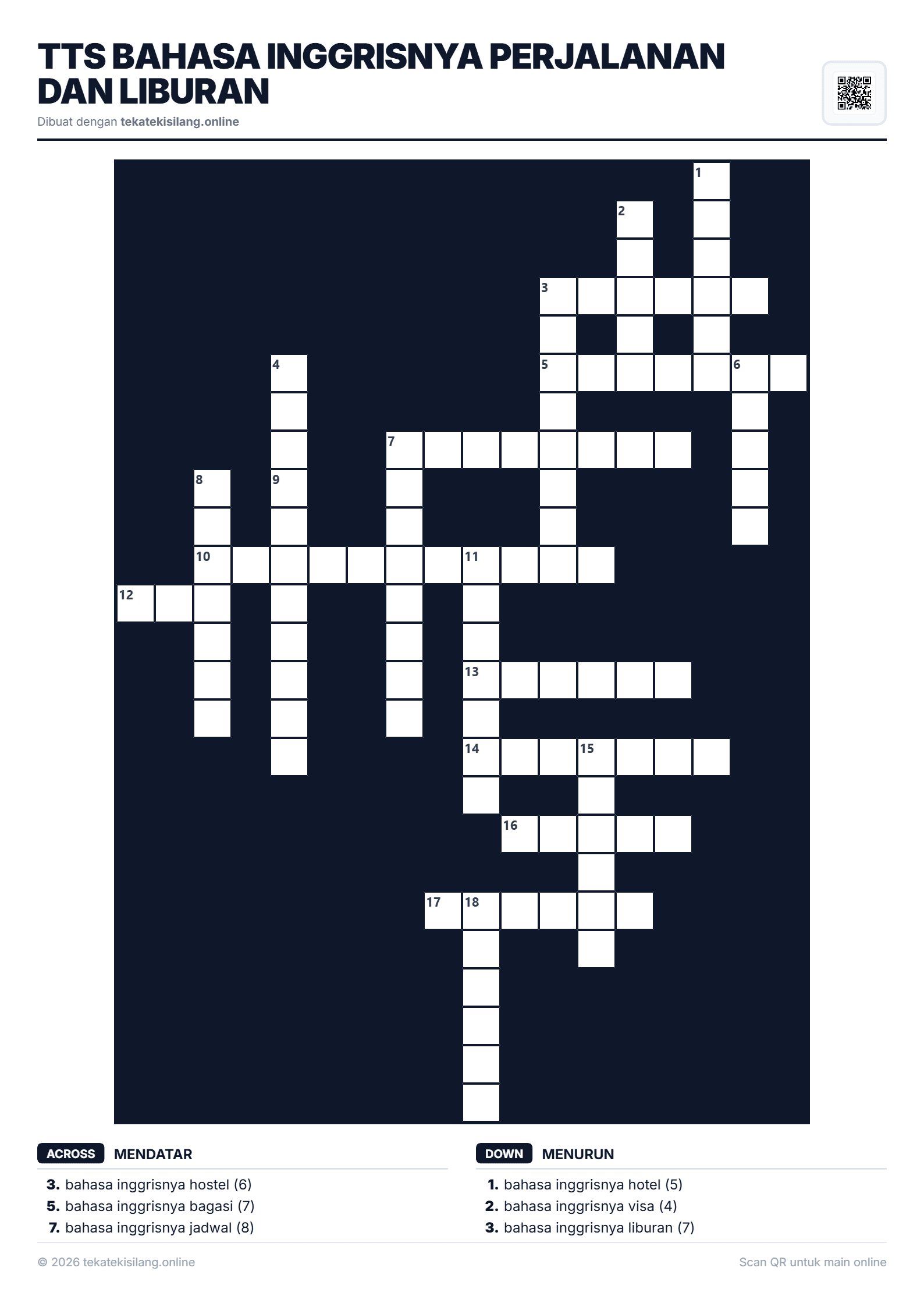 Visual puzzle TTS Bahasa Inggrisnya Perjalanan dan Liburan. Mainkan TTS online gratis sekarang!