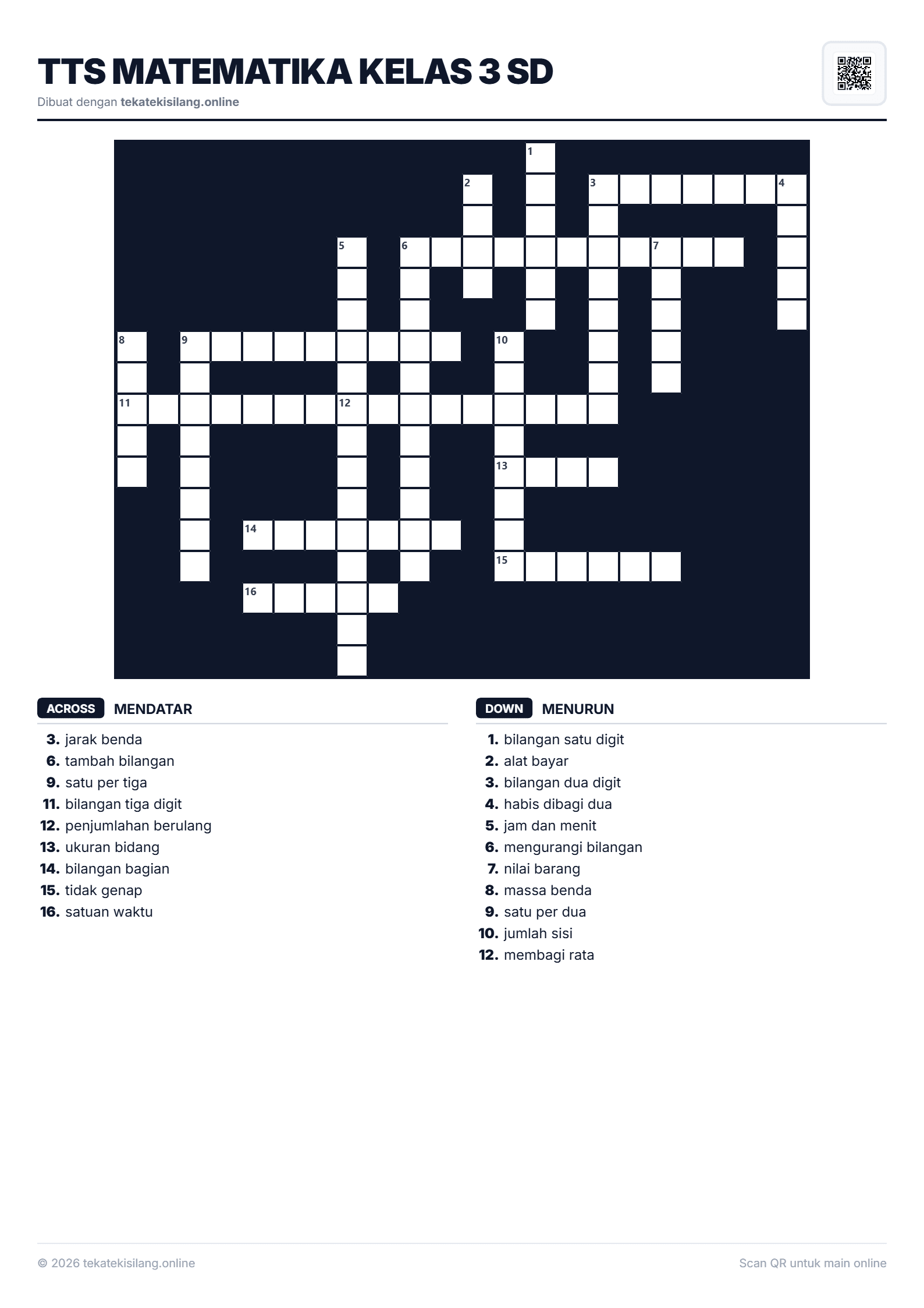 TTS Matematika Kelas 3 SD17/1/2026Sekolah1588 x 2246 pxVisual puzzle TTS Matematika Kelas 3 SD. Mainkan TTS online gratis sekarang!#TTS Matematika Kelas 3 SD#Sekolah#teka teki silang