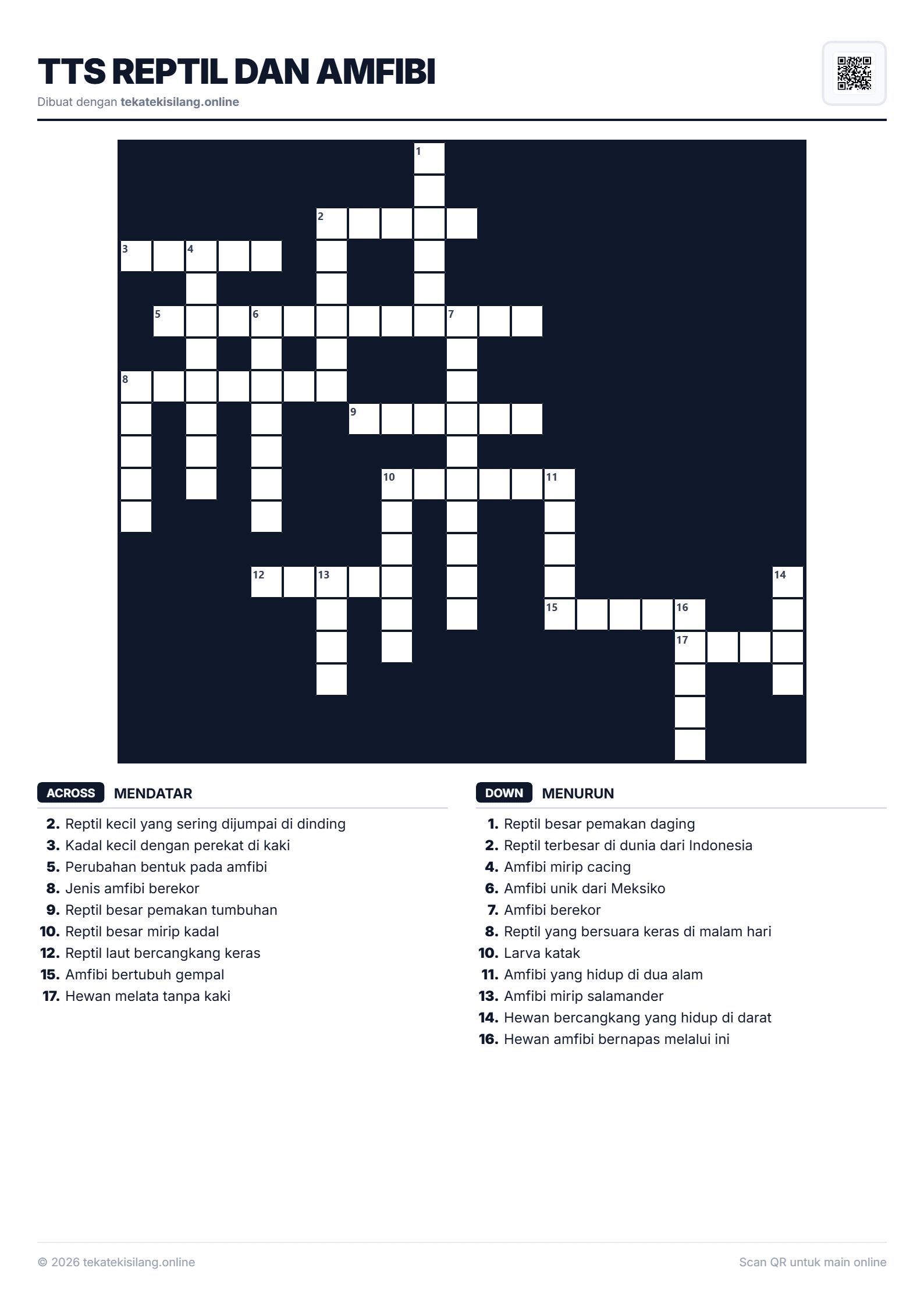 TTS Reptil dan Amfibi17/1/2026Biologi1588 x 2246 pxVisual puzzle TTS Reptil dan Amfibi. Mainkan TTS online gratis sekarang!#TTS Reptil dan Amfibi#Biologi#teka teki silang